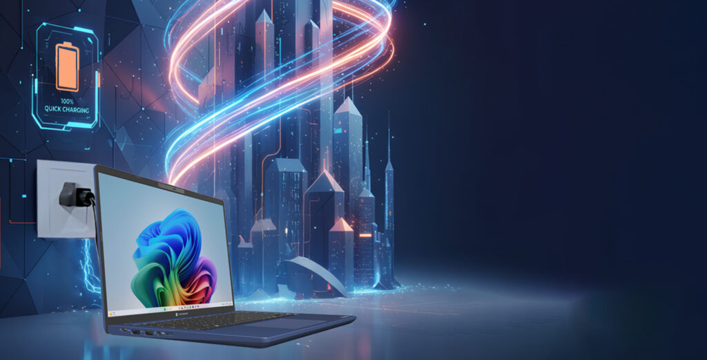 Weighing just 0.96 Kg and built with a durable magnesium-alloy chassis, this laptop is built for professionals on the move. Travel light, stay productive.